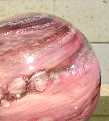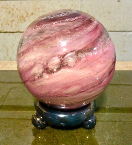 This 8” Memorial Gazing Orb has an Upgraded Base and cemation remains also encased in the surface glass.