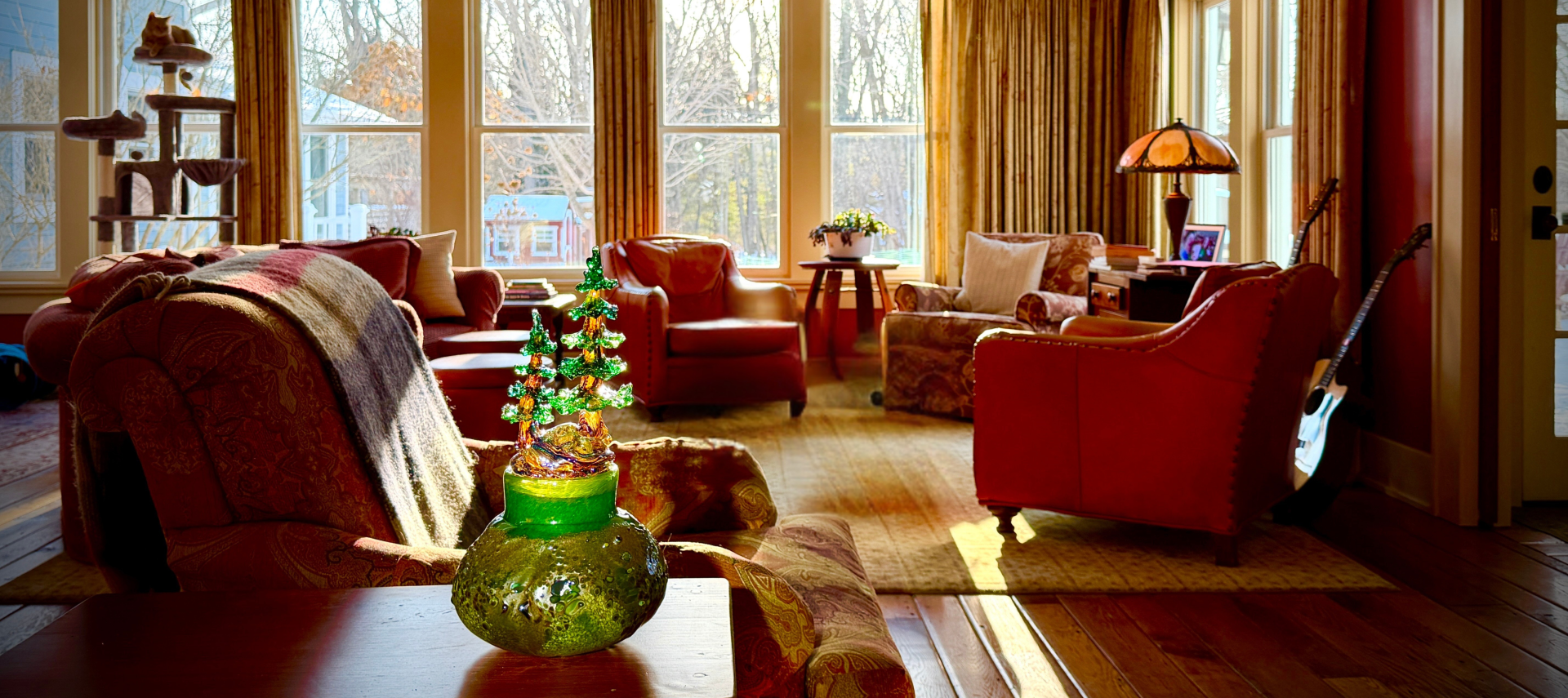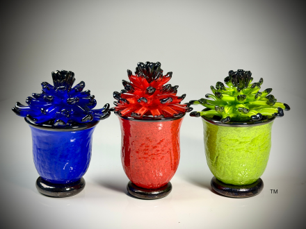This trio serve as examples. There are many other colors and styles from which you can choose. Master glass artist, Chris Nordin, will be glad to support you in making choices that best meet your needs.