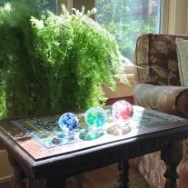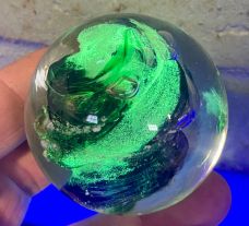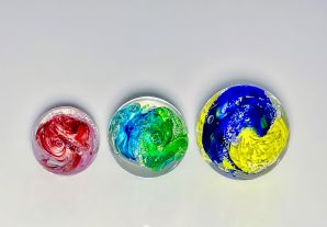 You are invited to view our portfolio under the Our offerings tab to see past creations. While each Memory Sphere is unique, colors and combinations can be replicated to suit your preferences. Cremation remains add a third color (light gray or white), and optional fluorescence can provide a gentle glow for nighttime display.