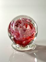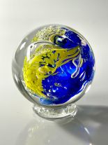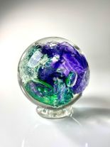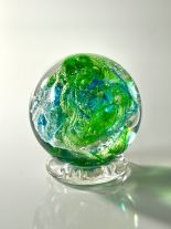 Every Memory Sphere includes a hand-pressed clear glass pedestal to ensure secure placement, and each one is unique, reflecting your color and design choices. You can also add an etching of your loved one’s name and birth/death dates, or choose fluorescence for a subtle glow in the dark.